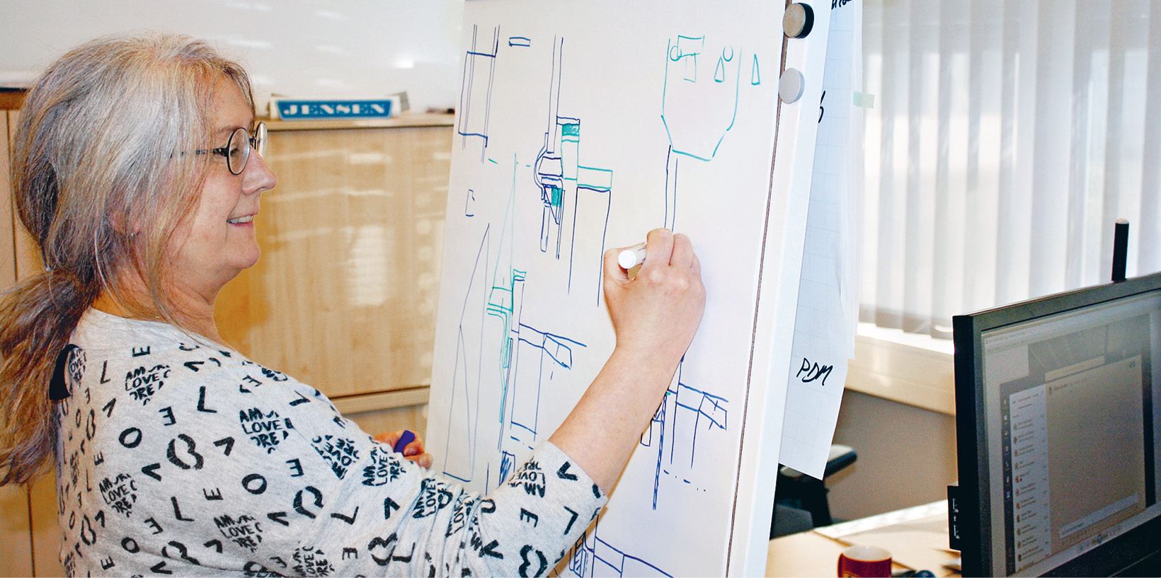 Frau Hinz musste neu anfangen und hat sich entschieden, noch mal einen neuen Beruf zu lernen. Nach 27 Jahren in der Druckindustrie wollte sie im technischen Bereich bleiben, und seit 2018 lernt sie den Beruf der Technischen Produktdesignerin. Aufgrund der angespannten Beschäftigungssituation in der Druckindustrie hielt der Berater in der Agentur für Arbeit die Förderung einer neuen Berufsausbildung für sinnvoll. Wichtig war ihm hierbei, dass Frau Hinz auf ihre bisherigen beruflichen Erfahrungen und ihr gutes Verständnis für technische Abläufe aufbauen kann. Zudem spielte auch die große Motivation eine wichtige Rolle, denn bei einer von der Agentur für Arbeit geförderten Umschulung ist die reguläre Ausbildungszeit um ein Jahr auf zwei Jahre verkürzt. Das stellt eine erhöhte Anforderung an die Teilnehmenden.