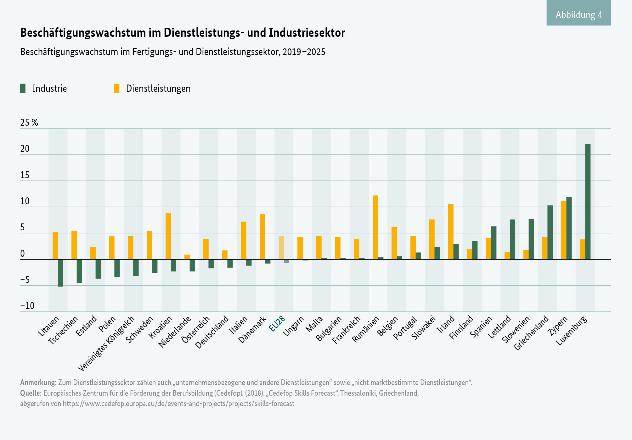 Abbildung 2: Im Schnitt dürften rund 50 Prozent aller Arbeitsplätze in den EU-Ländern, zu denen entsprechende Daten vorliegen, in den nächsten 10 bis 20 Jahren erheblich von Automatisierung betroffen sein. Bei 18 Prozent der Arbeitsplätze ist die Automatisierungswahrscheinlichkeit hoch, während weitere 32 Prozent erheblichen Veränderungen unterliegen dürften.