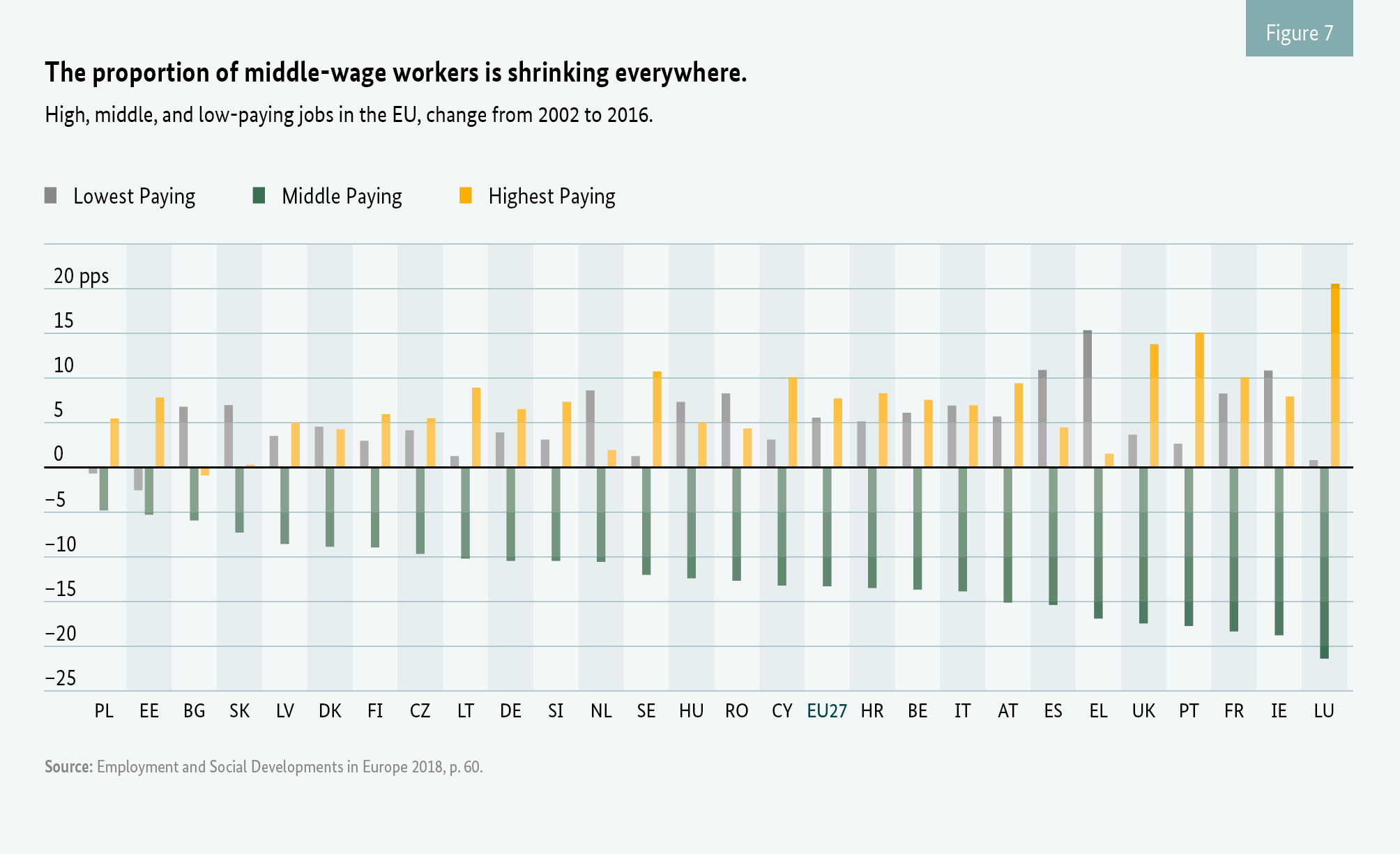 - Future wage premiums for higher skills may be at risk. Increasing job polarisation has been observed in all Member States since the start of the decade (Figure 7).